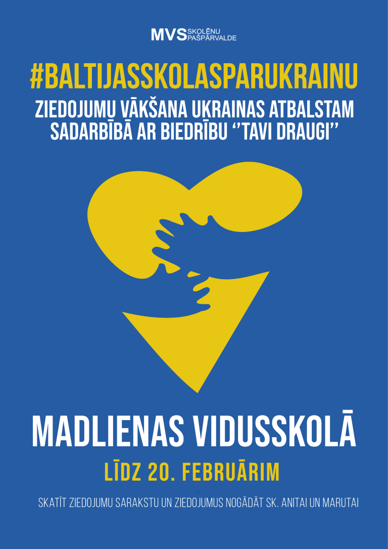 Kopš Krievijas iebrukuma Ukrainā 2022. gada 24. februārī Madlienas vidusskola un pārējās Latvijas skolas ir aktīvi iesaistījušās ziedojumu vākšanā, lai palīdzētu Ukrainas iedzīvotājiem un karavīriem. Akcija, kas ir turpinājums pagājušā gada veiksmīgajai kampaņai “Skolas par…